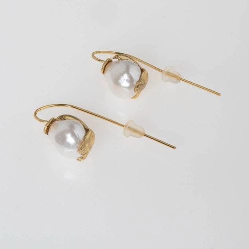 Pozłacane kolczyki haczyki z perłą w delikatnej oprawie