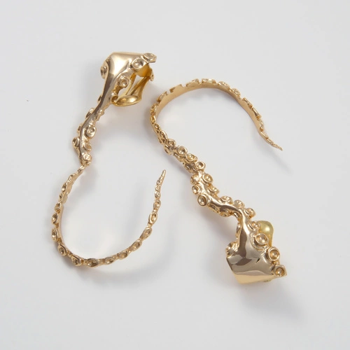 Pozłacane kolczyki klipsy w formie macek ośmiornicy