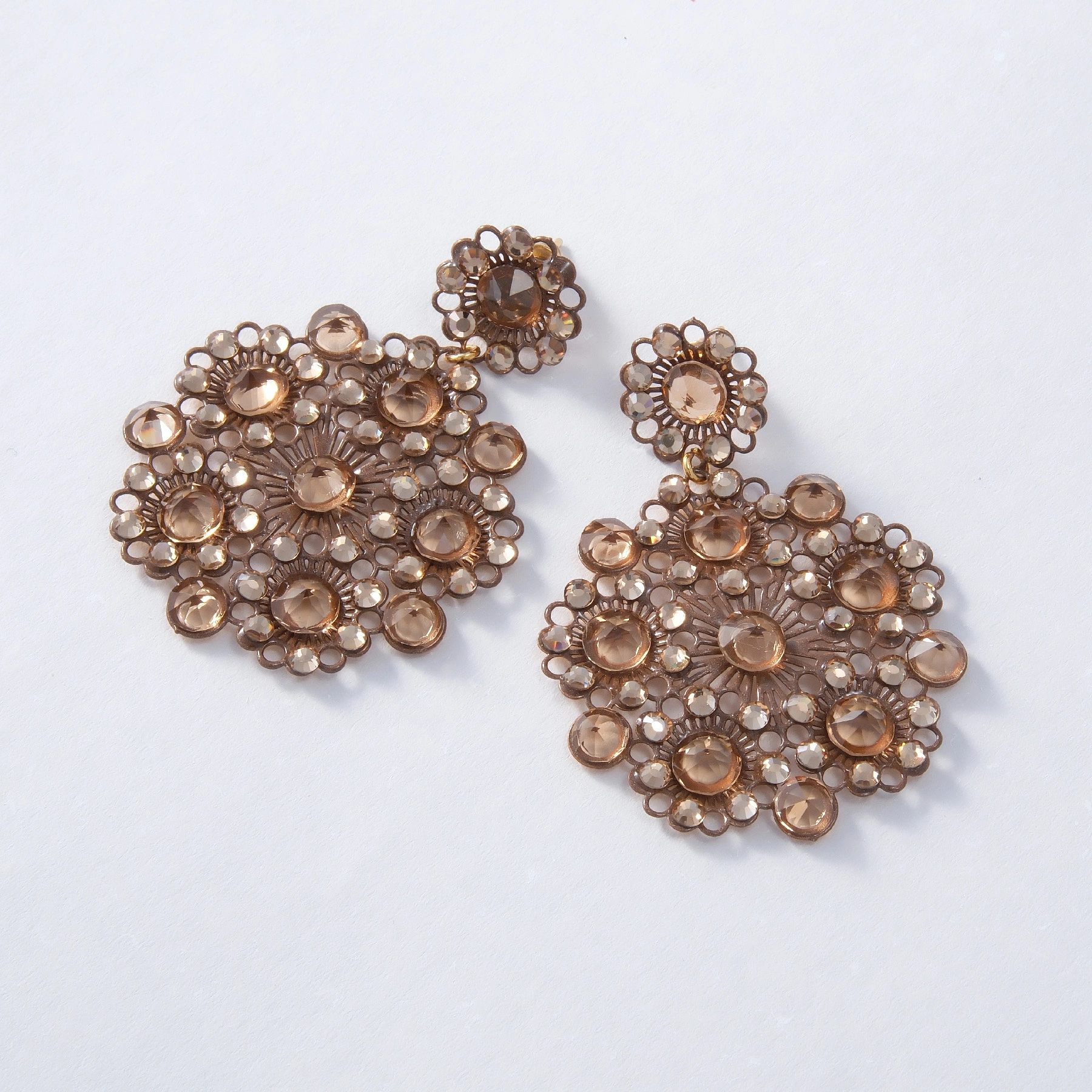 Pozłacane kolczyki kwiaty z kryształami w tonie szampana
