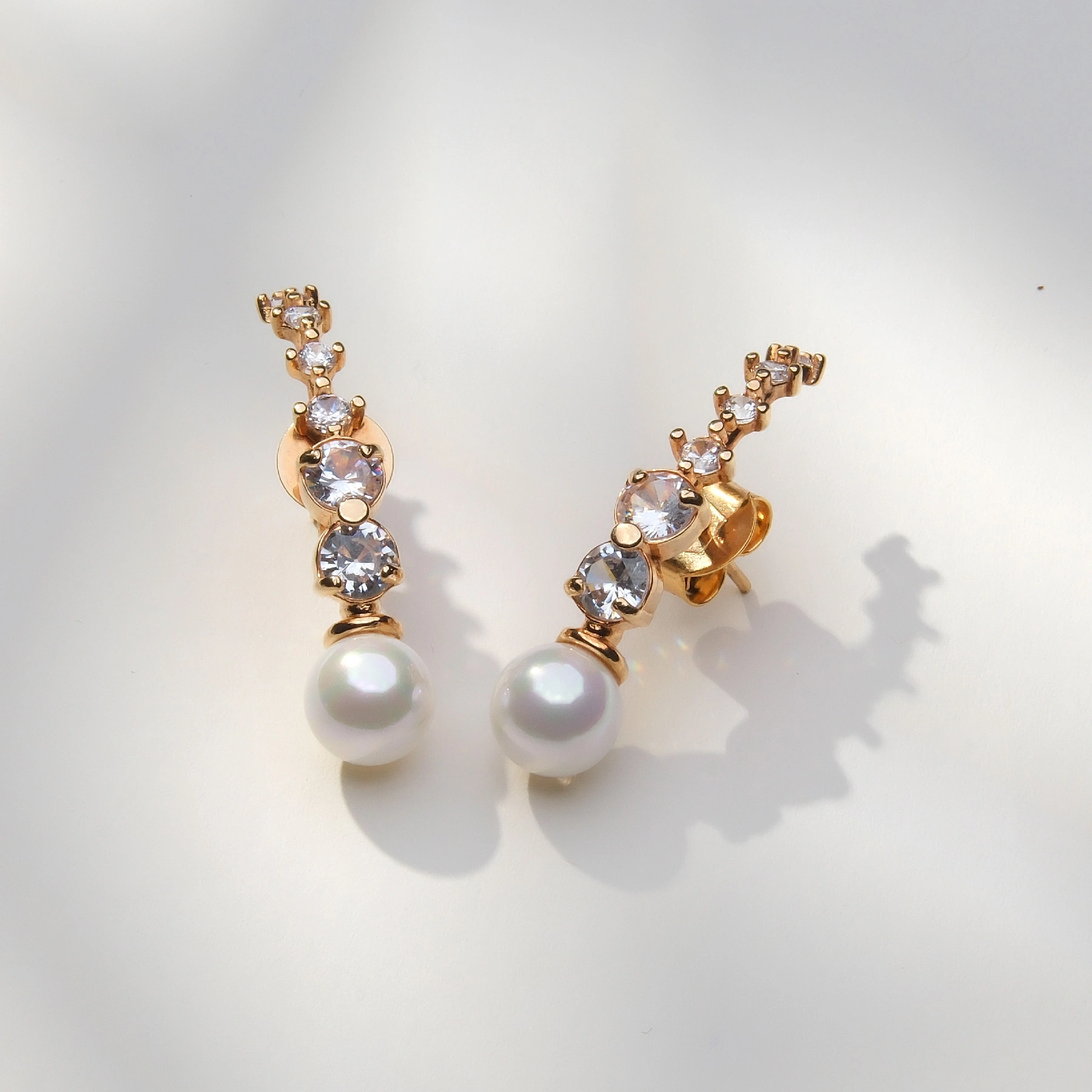 Pozłacane kolczyki wiszące z kryształkami i perłami
