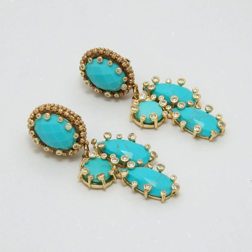 Pozłacane kolczyki z masą turkusową i cyrkoniami