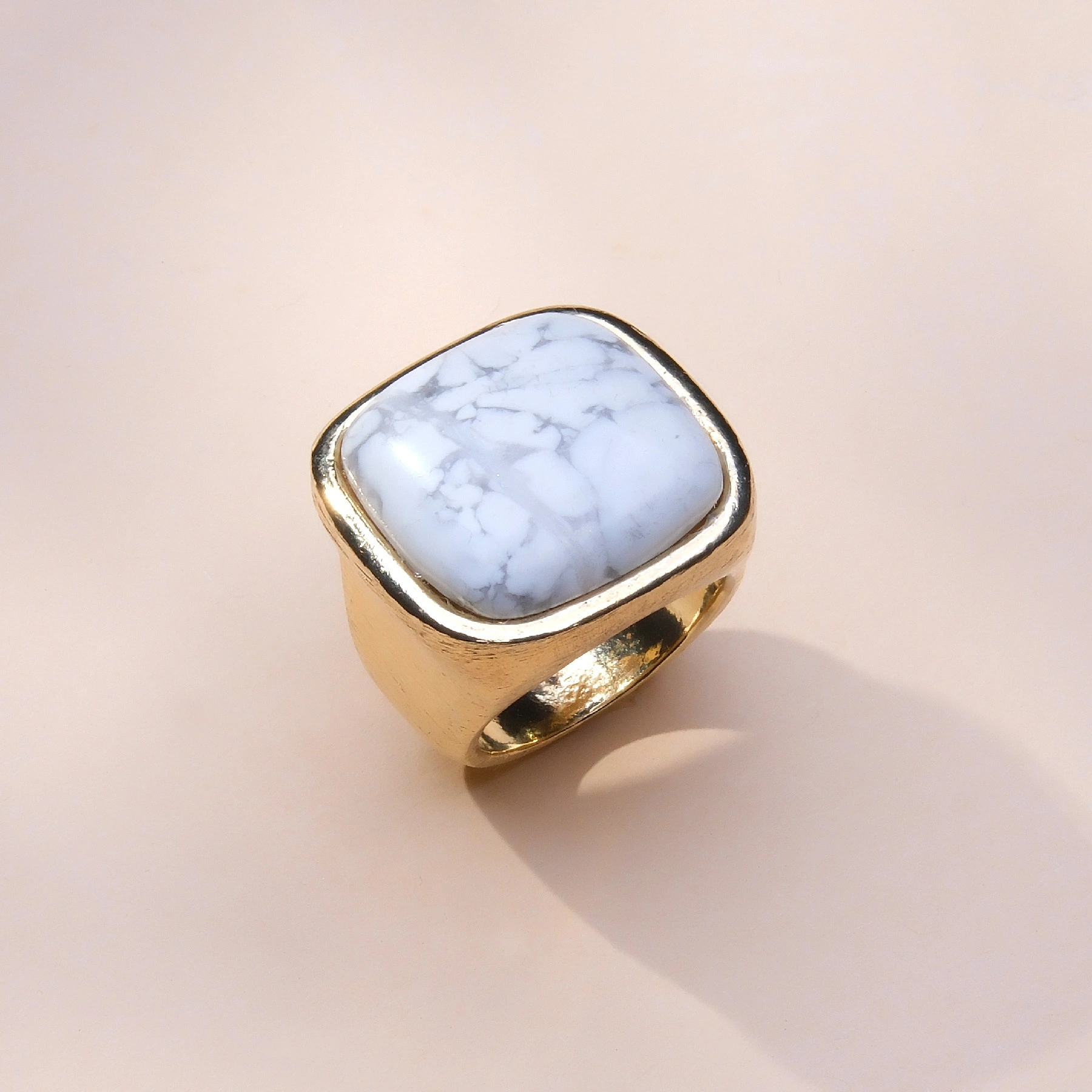 Pozłacany pierścień z białym kwadratowym howlitem