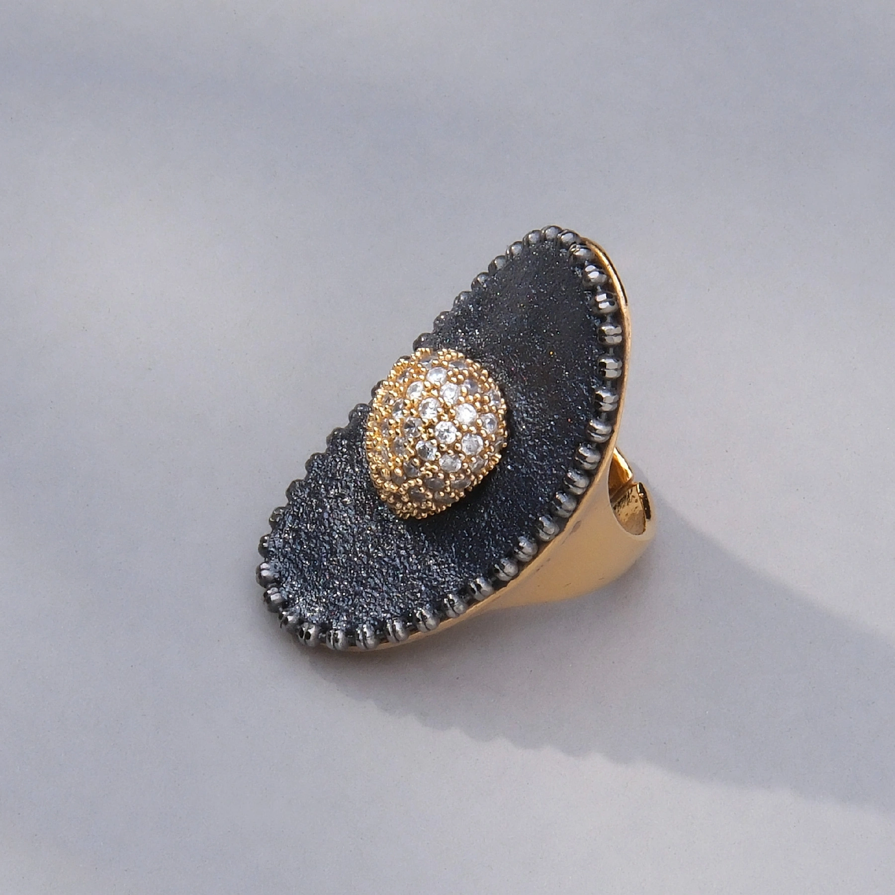 Pozłacany pierścień z kopułkową rozetką z cyrkonii