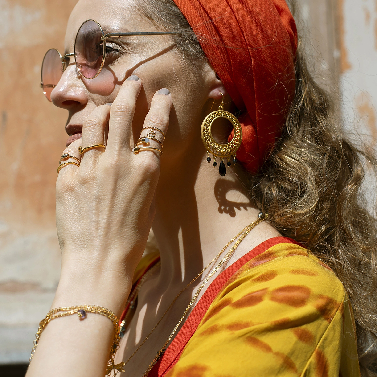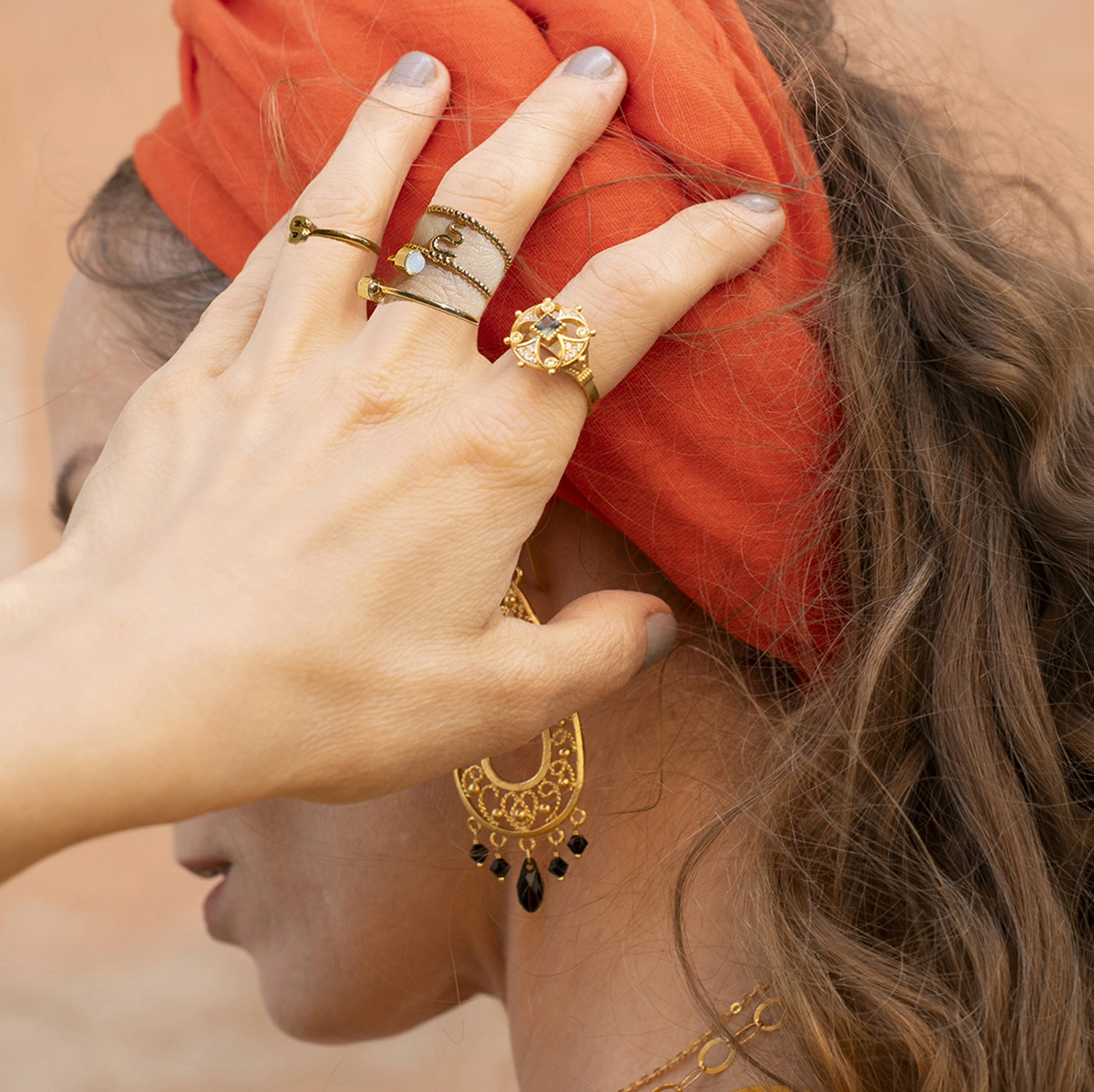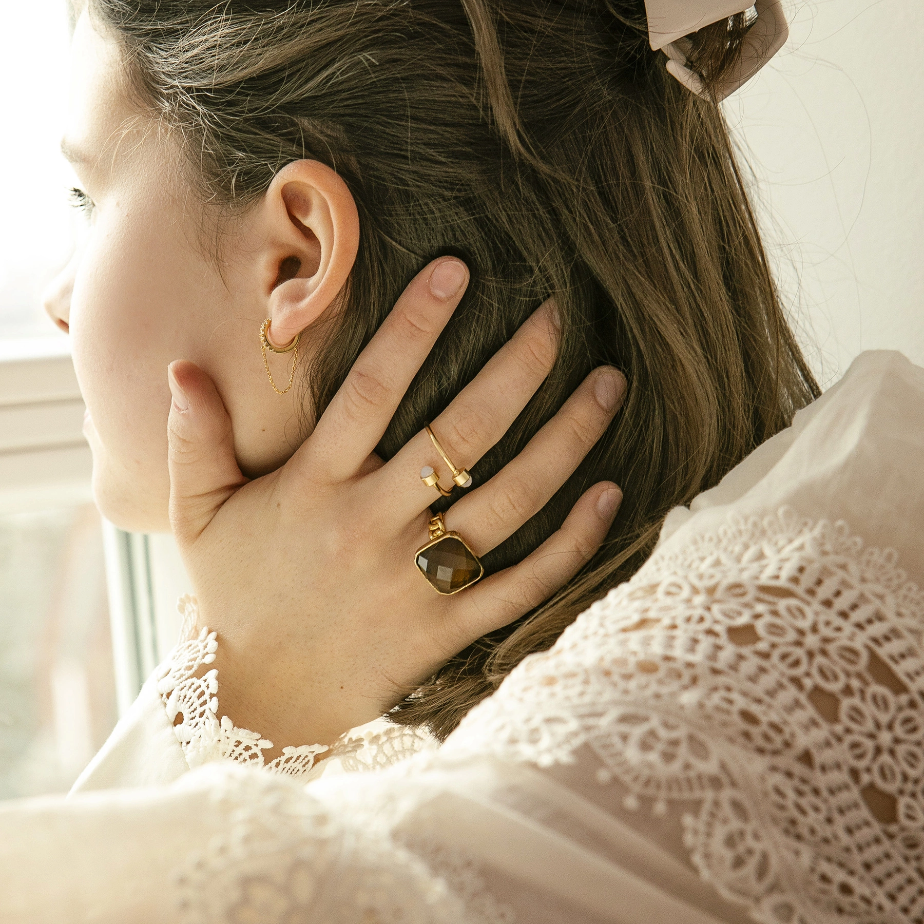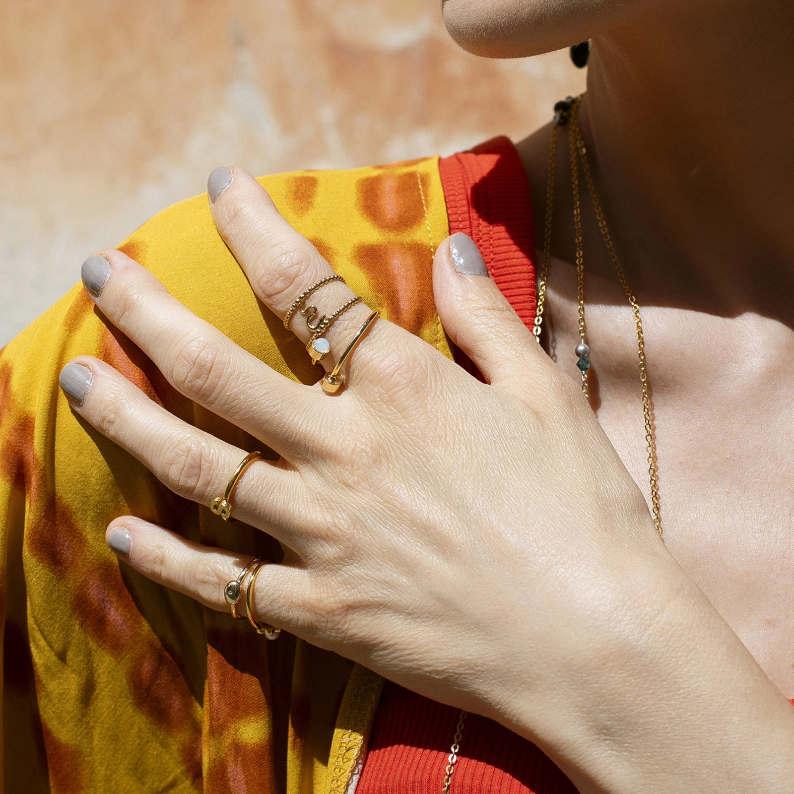 Pozłacany pierścionek z opalowymi kryształami. TU I TERAZ