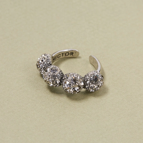 Regulowany srebrzony pierścionek z kryształowymi kulkami