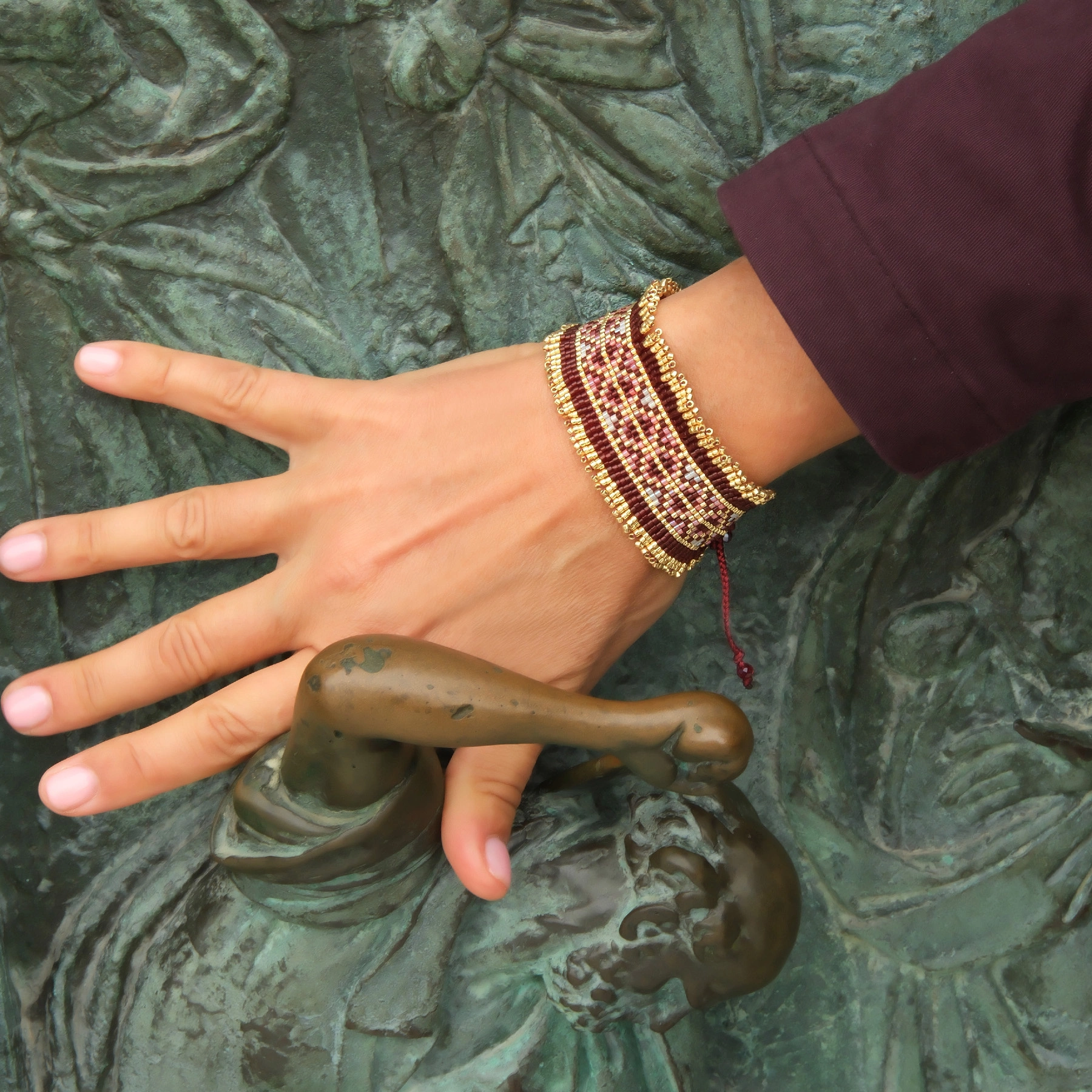 Szeroka bransoletka z paciorków Miyuki ze wzorem