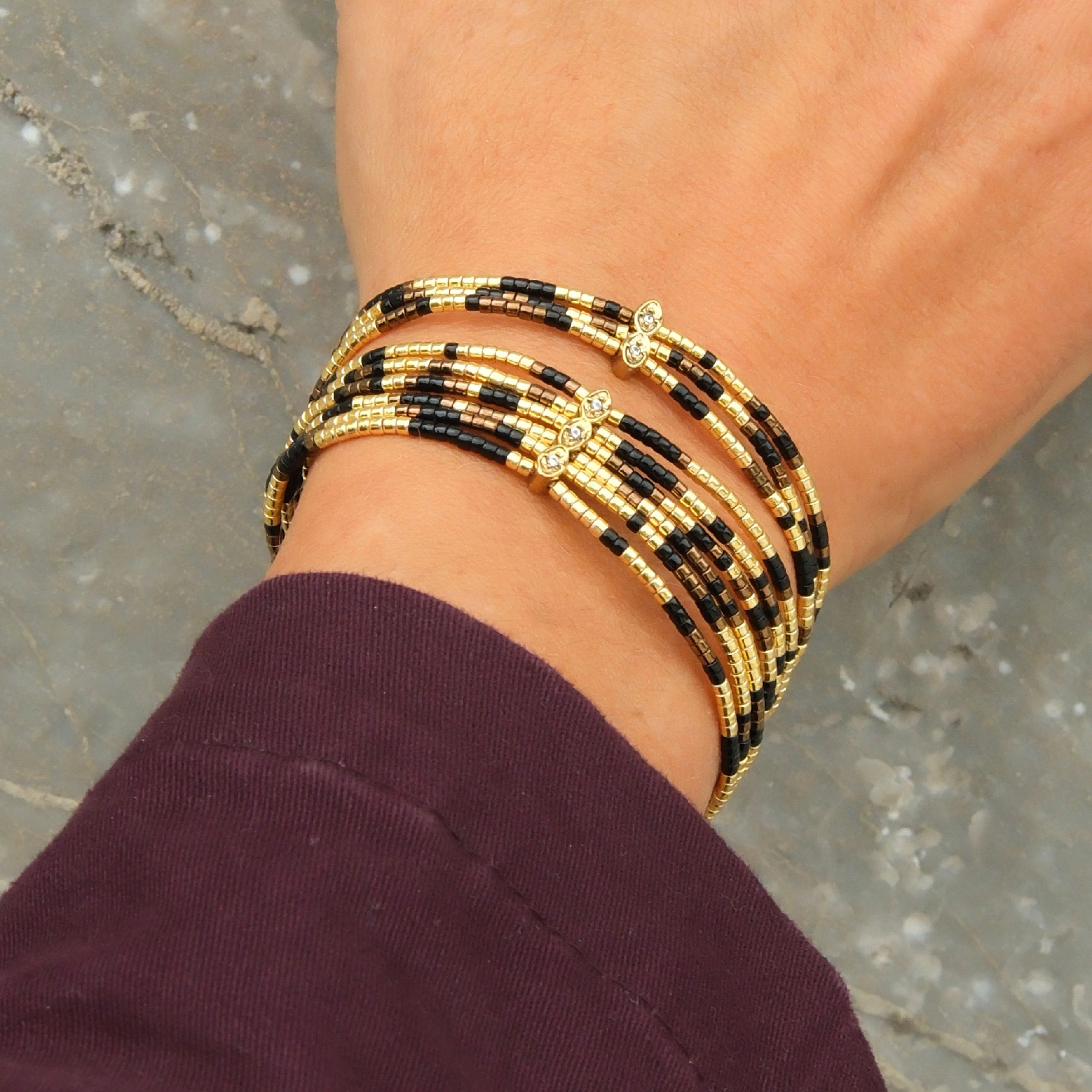Sześciorzędowa bransoletka z paciorków Miyuki z cyrkoniami