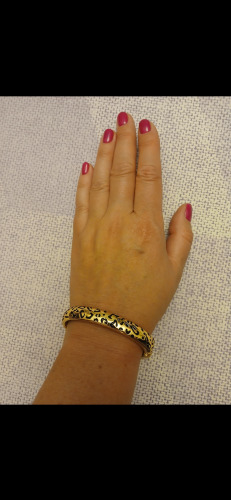 Sztywna pozłacana bransoletka z czarnymi cętkami pantery