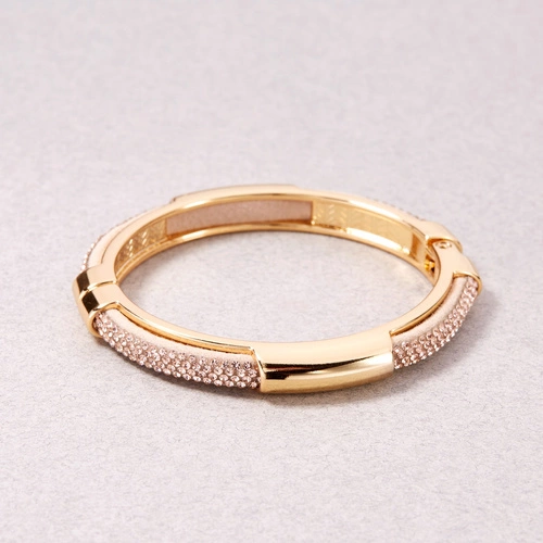 Sztywna złocona bransoletka z różówą połyskującą gumą