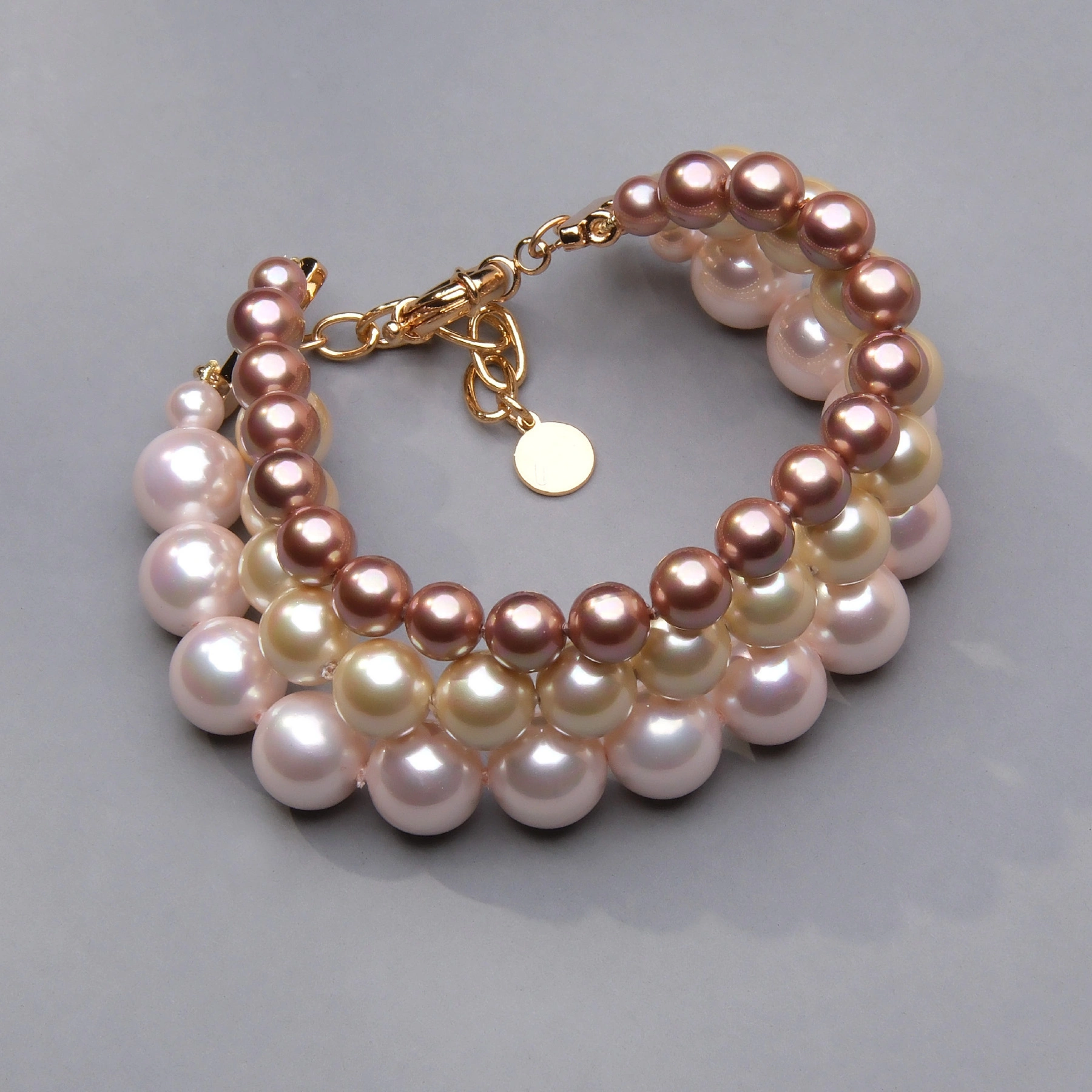 Trzyrzędowa bransoletka z pereł w różnej tonacji