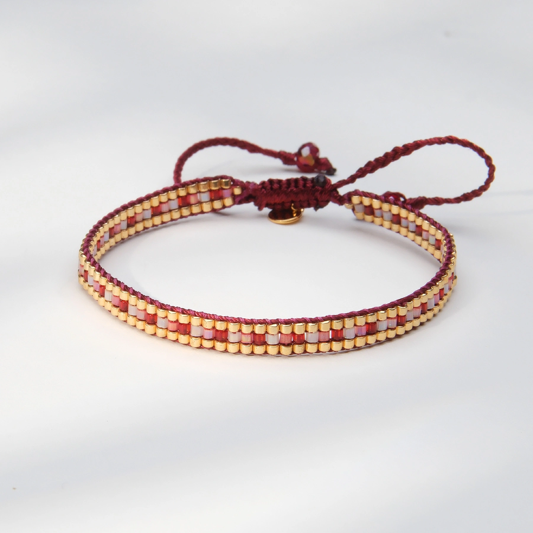 Wąska bransoletka z paciorków Miyuki w kolorze cabernet