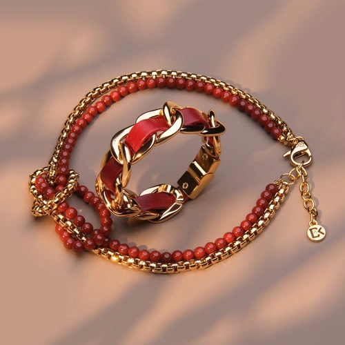 Zestaw bransoletka i naszyjnik w złocie i cabernet