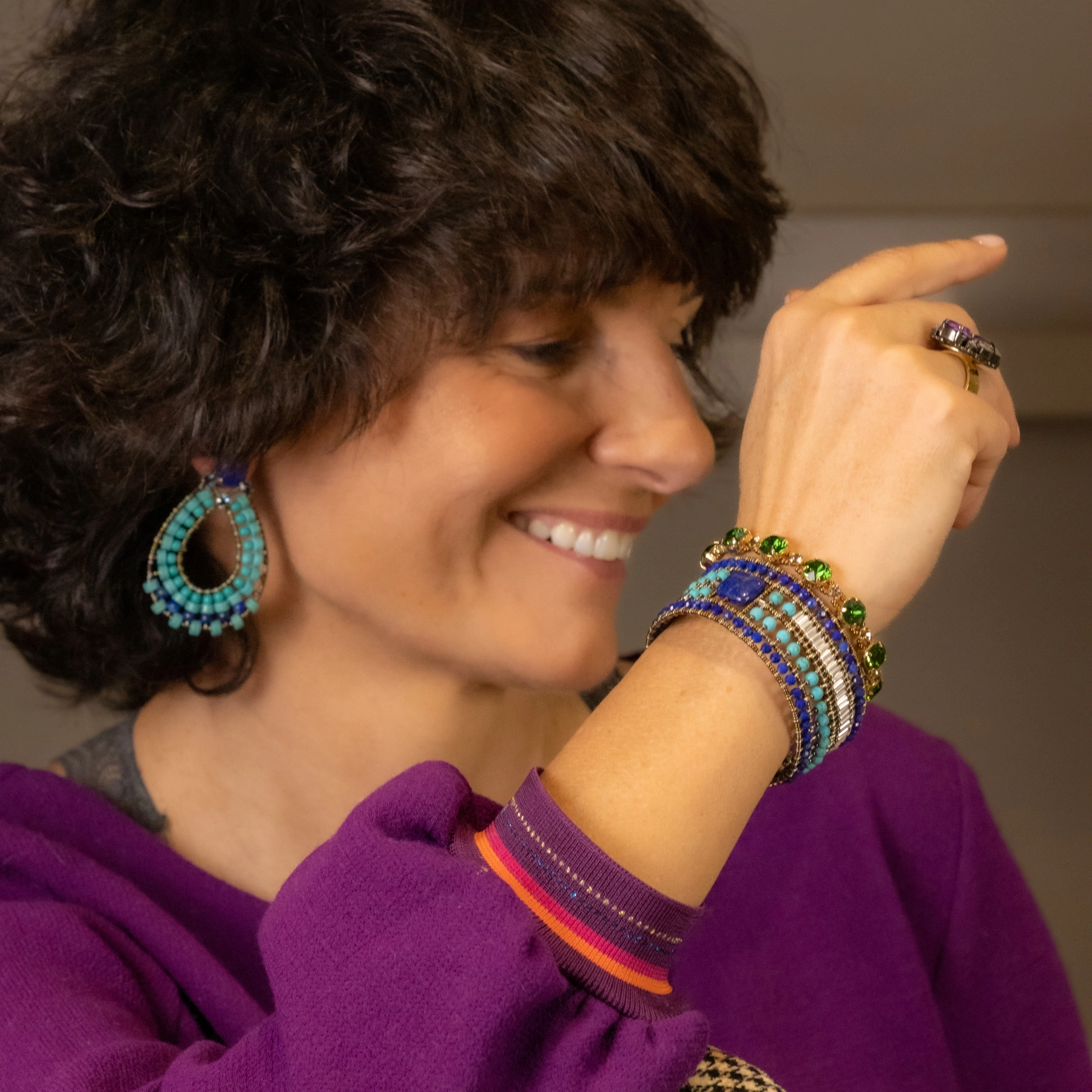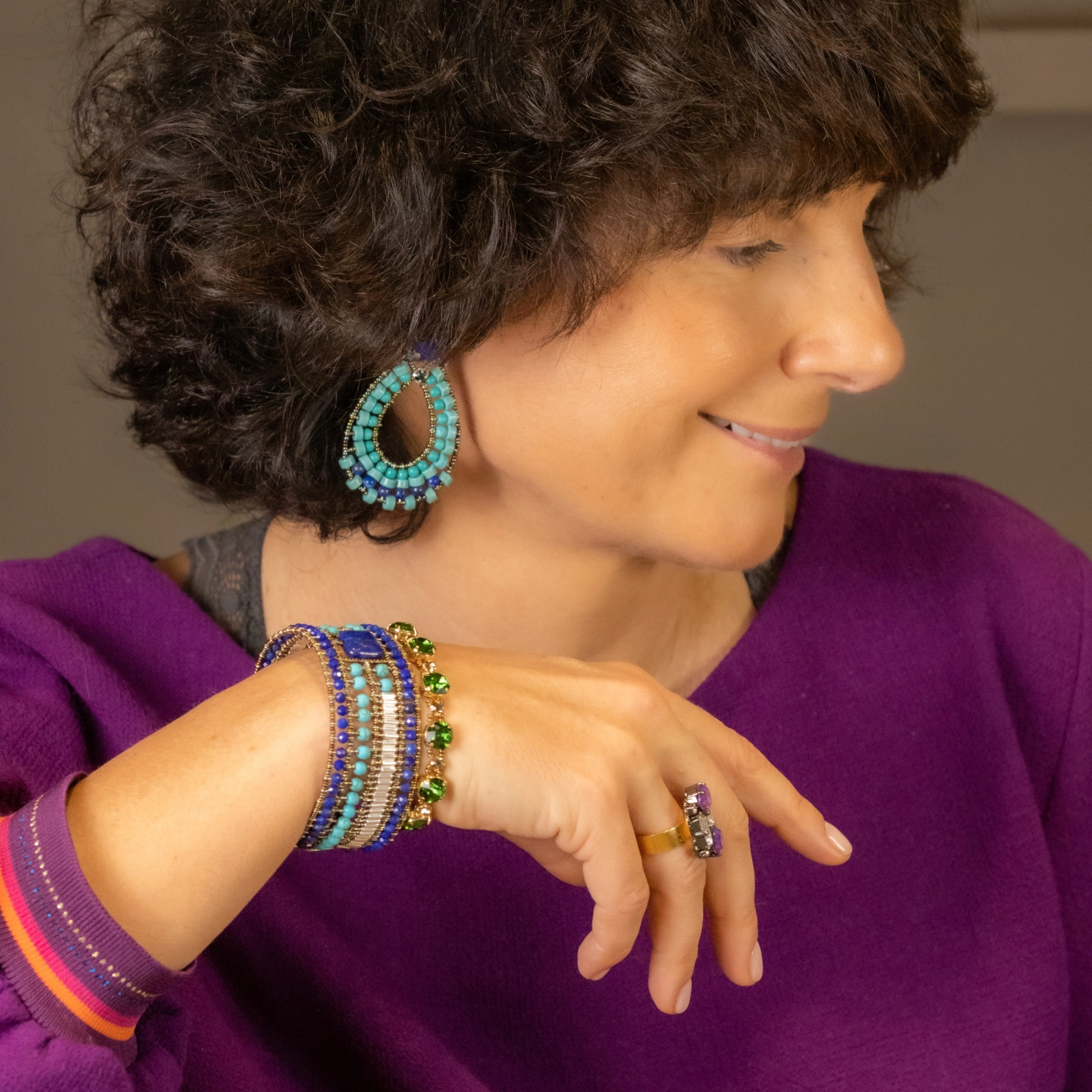 Jeanine razem z siostrą i mamą rozwinęły jedną z najciekawszych brazylijskich marek biżuteryjnych, Caleidoscopio. Tworzą akcesoria pełne blasku i kolorów, niosące radość, ale też lekkie i wygodne. Same będą zabieganymi kobietami wiedzą, jak ważne jest czuć się piękną przez cały dzień.