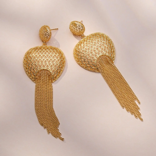 Złocone kolczyki z ażurowymi dekorami i łańcuszkami