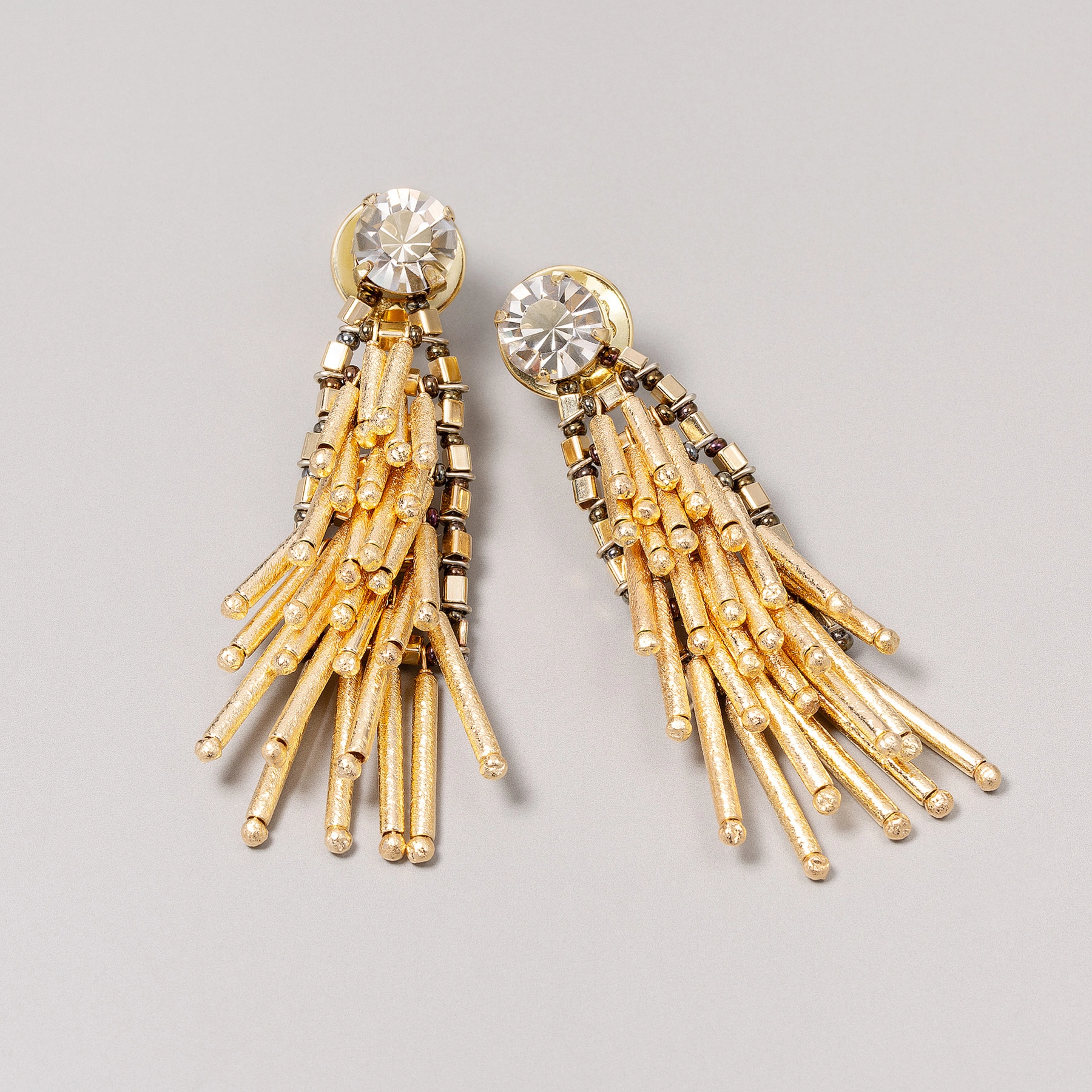 Złocone kolczyki z kryształem i kaskadą pręcików