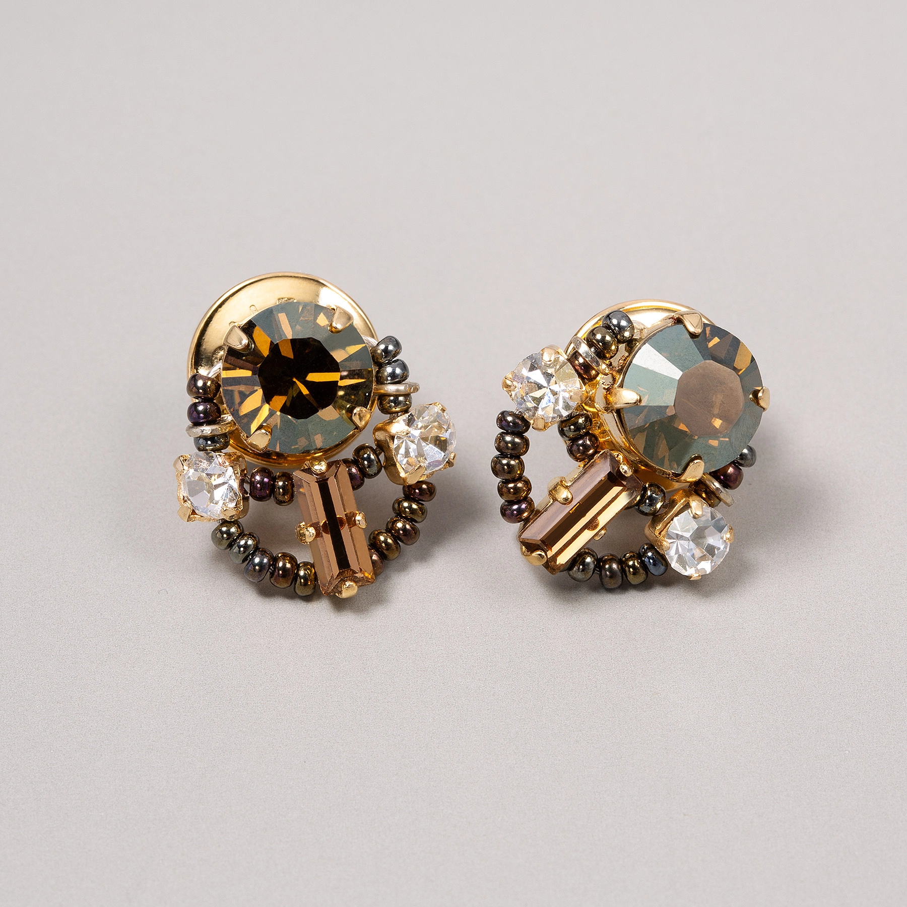 Złocone kolczyki z kryształkami w kolorze szampana