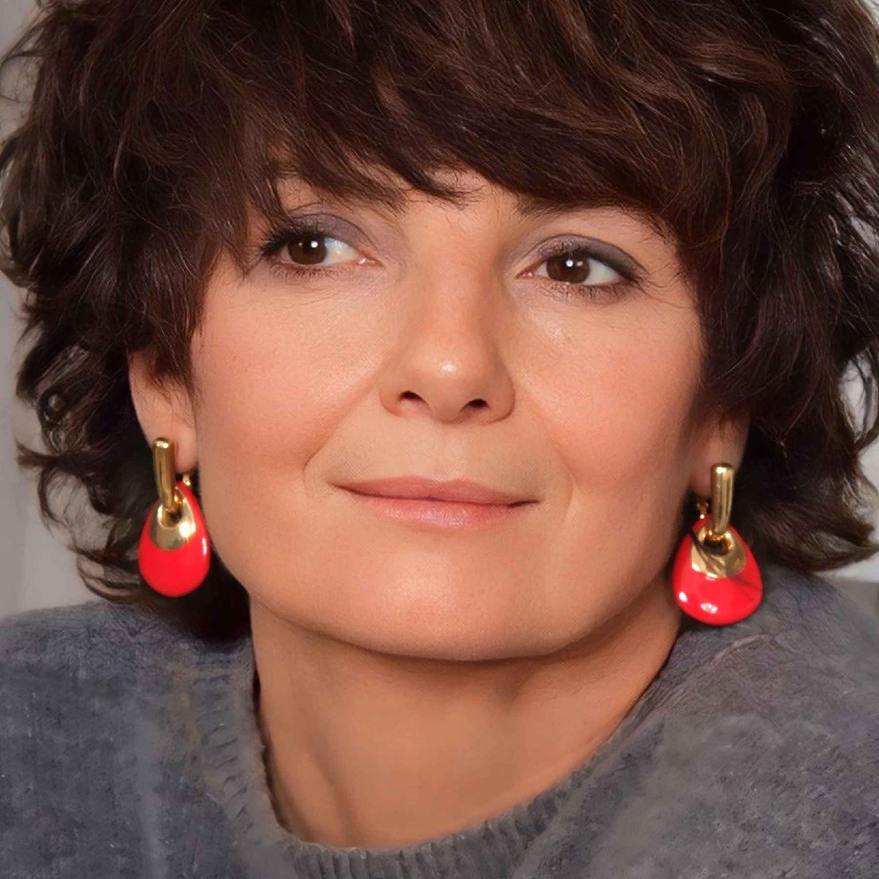 Złocone kolczyki z zawieszką emaliowaną na czerwono
