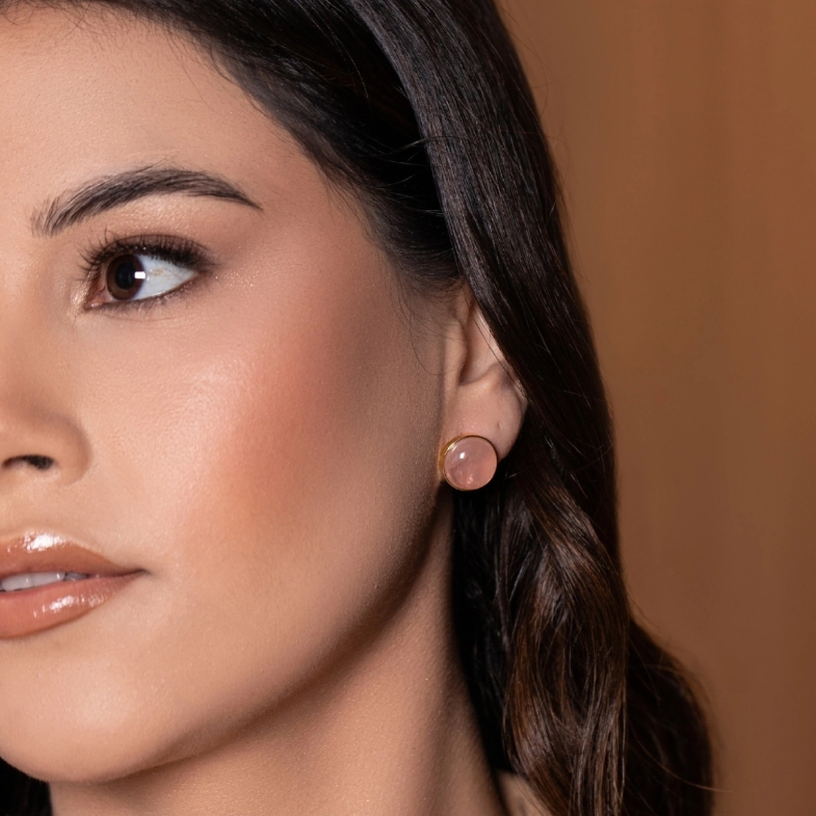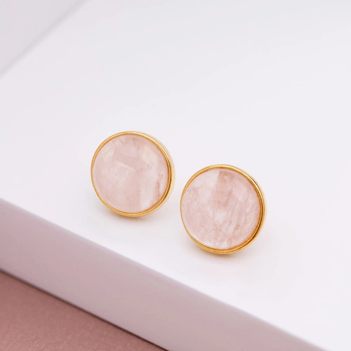Złocone kolczykiw formie półkul z różowym kwarcem