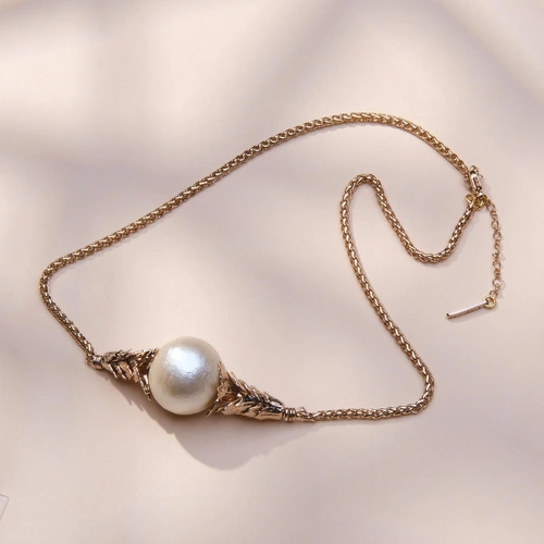 Złocony naszyjnik z perłą bawełnianą w objęciu liści