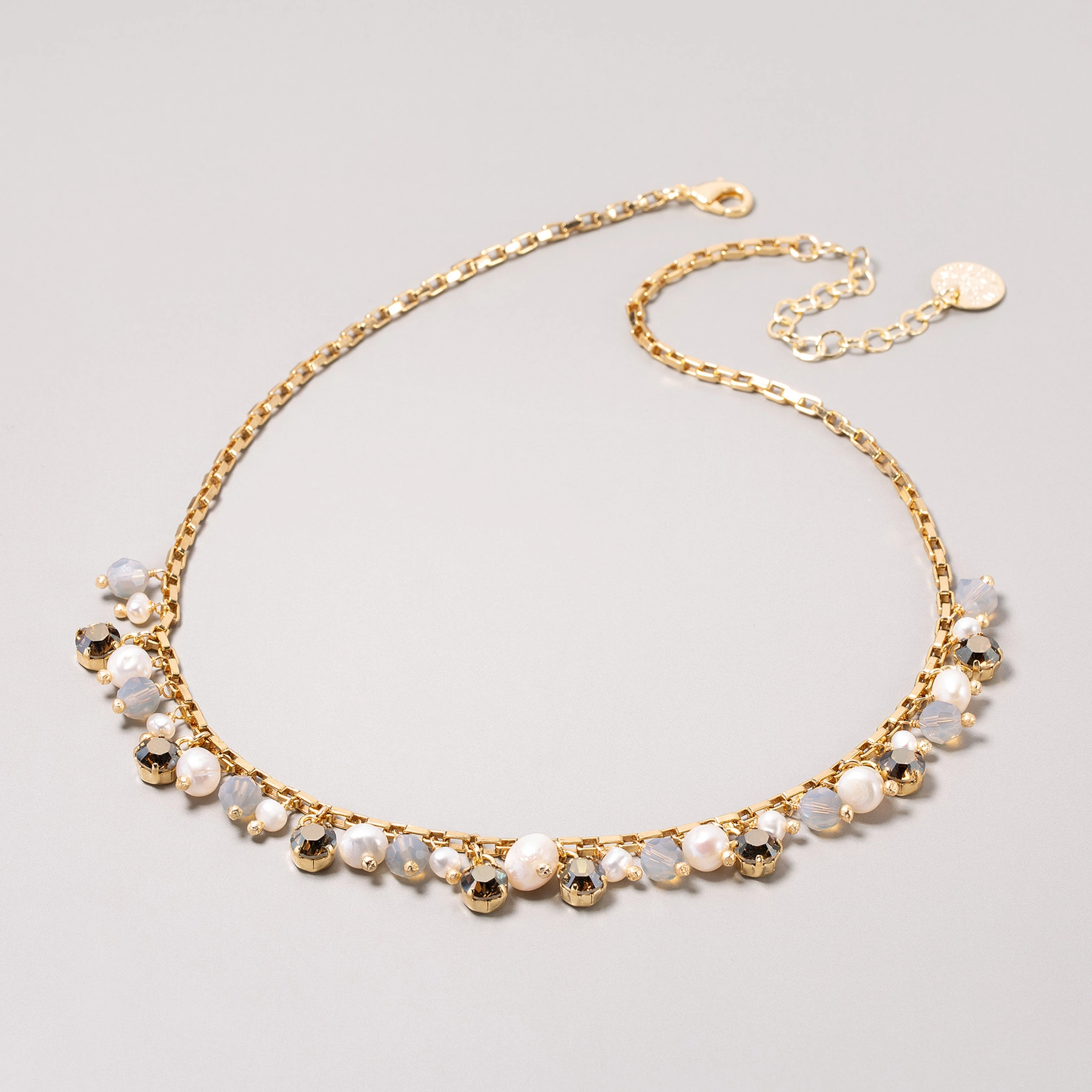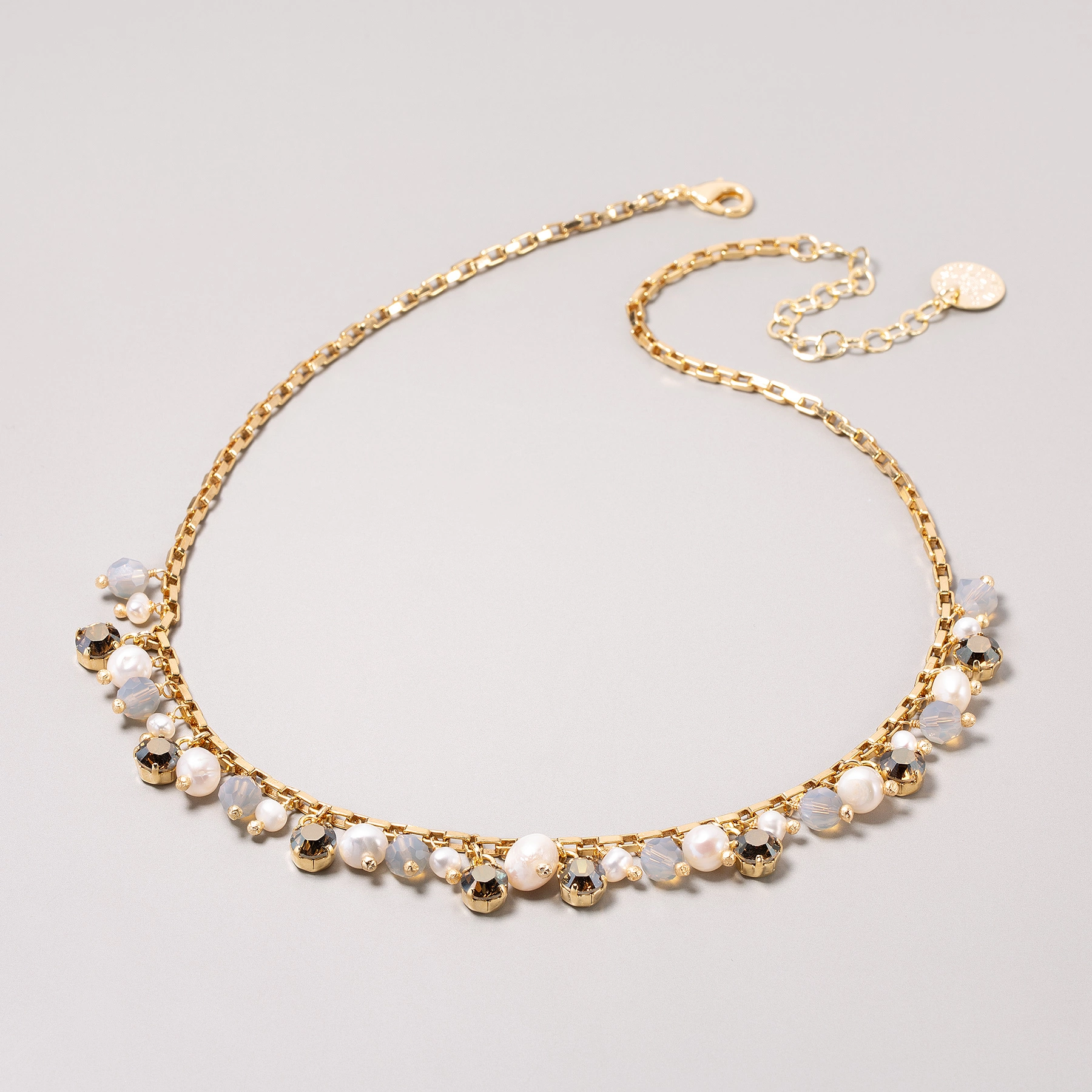 Złocony naszyjnik z perłami, koralikami i kryształkami
