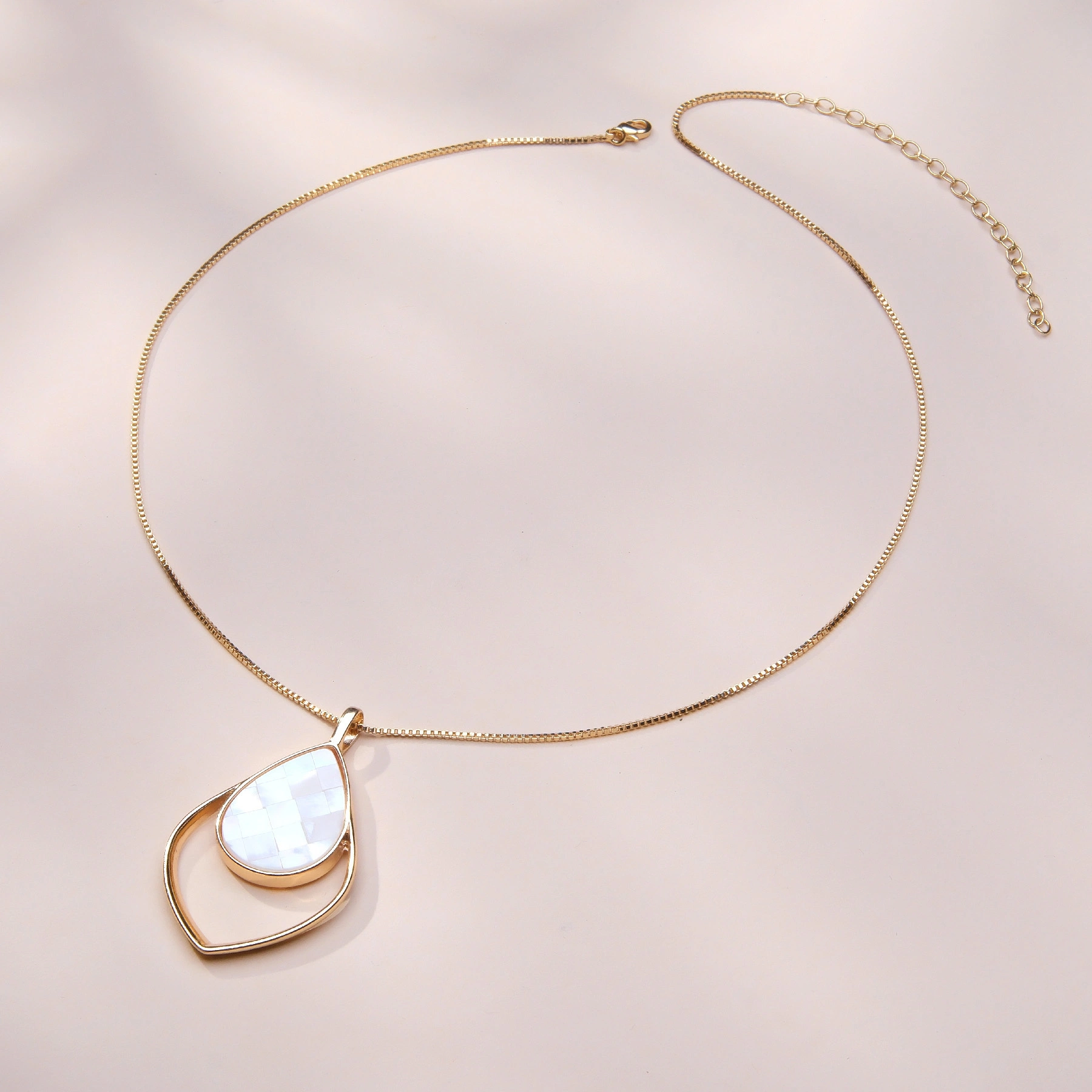 Złocony naszyjnik z zawieszką kroplą z masą perłową