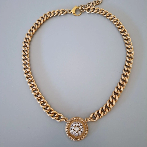 Złocony naszyjnik z zawieszką z rozetą z cyrkonii