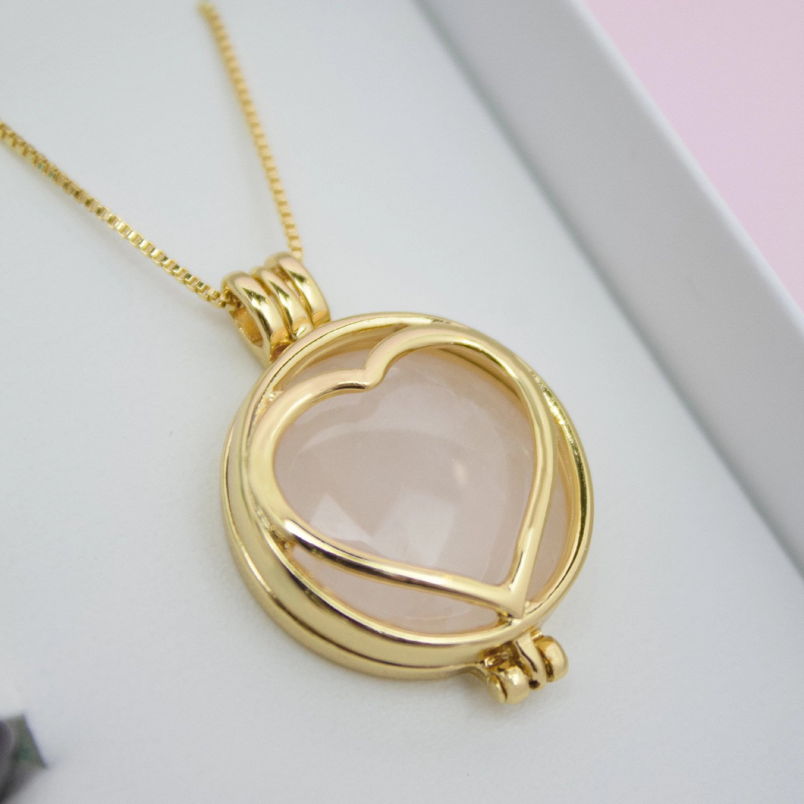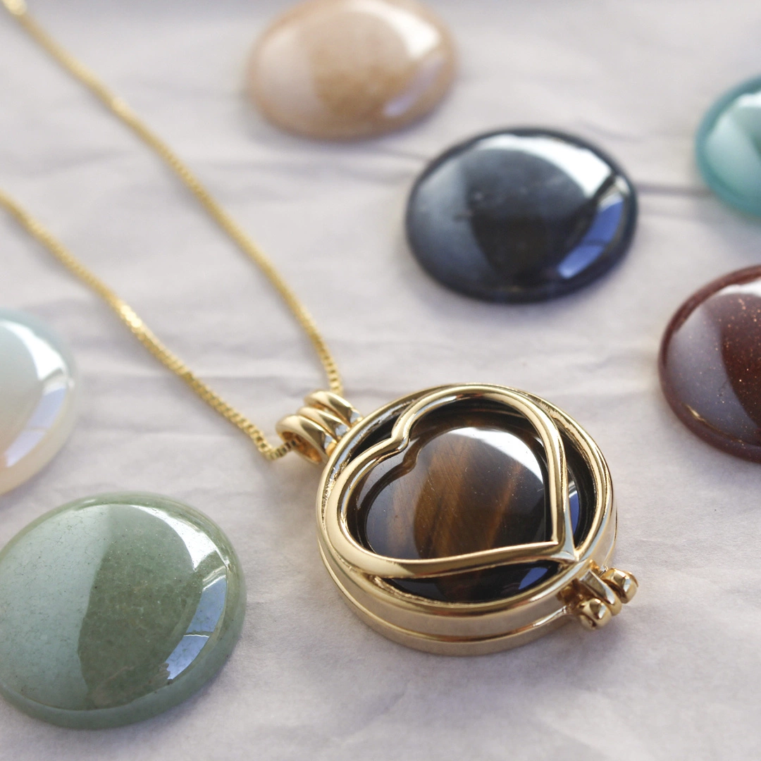 Złocony wisiorek z sercem i 7 wymiennymi kamieniami