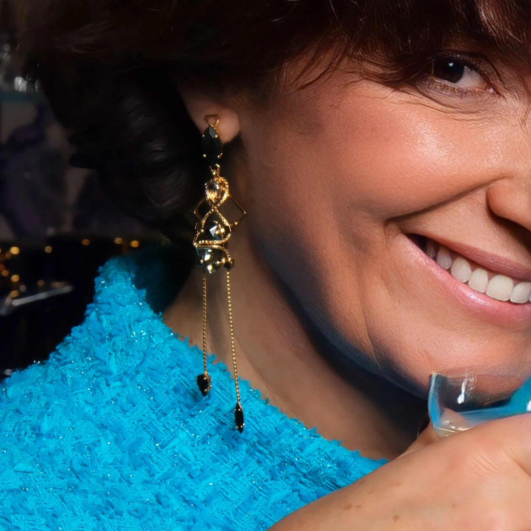 Zwiewne kolczyki z kryształami w czerni i grey diamond
