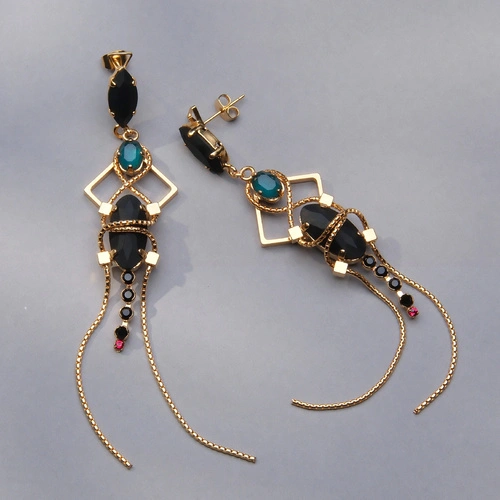 Zwiewne kolczyki z kryształami w czerni, turkusie i czerwieni