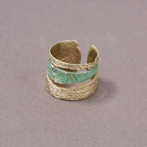 Złoty pierścionek na gumce z perełkami i kryształem