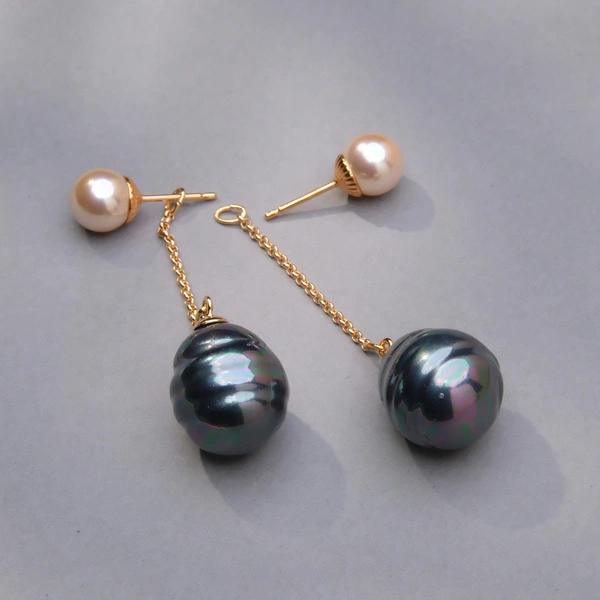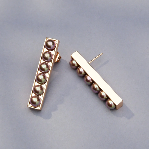 Kolczyki z perłami w tonach szampana, zieleni i fioletu