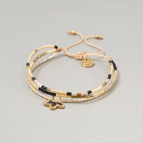 Bransoletka ze złotych i czarnych paciorków Miyuki