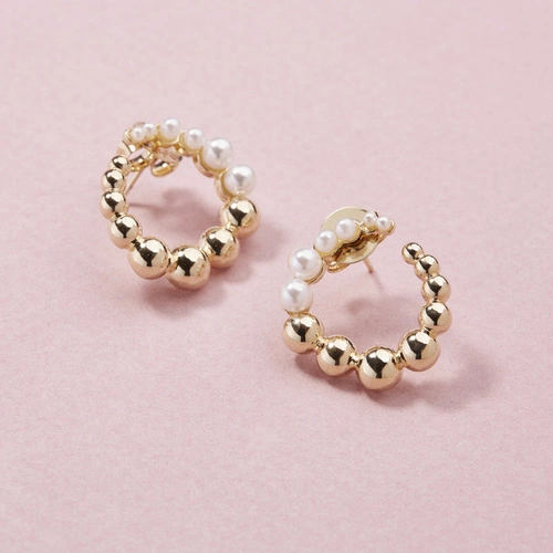Kolczyki wiszące z granatami, cyrkoniami i perłami