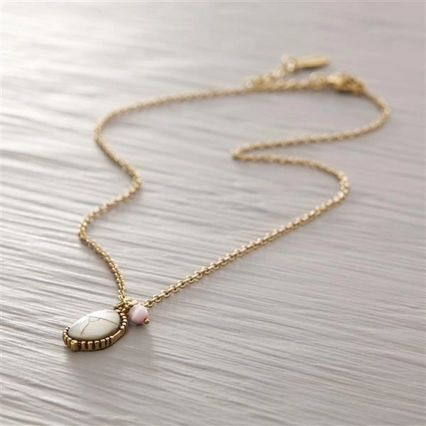 Pozłacany naszyjnik łańcuch zakończony okazałą perłą