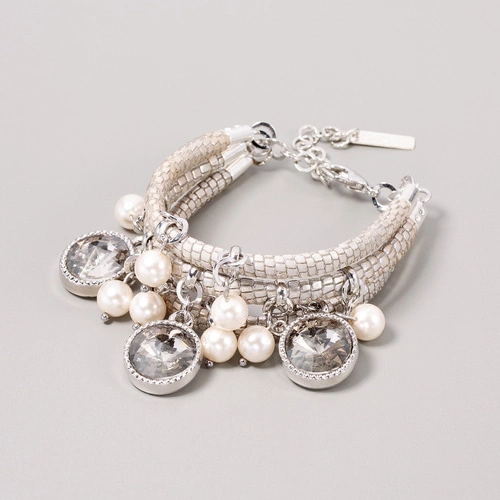 Posrebrzana bransoletka z szarych kryształków i koralików