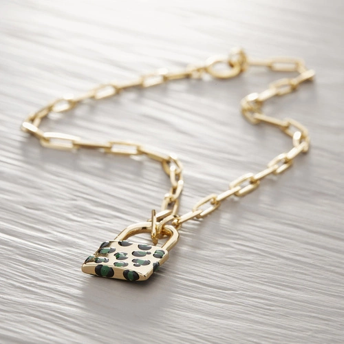 Krótki wisiorek na łańcuszku z zawieszką kłódką z cętkami
