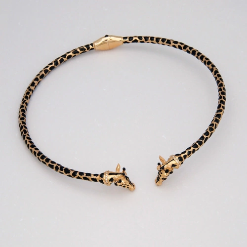 Sztywny pozłacany naszyjnik z głowami żyraf z cyrkoniami