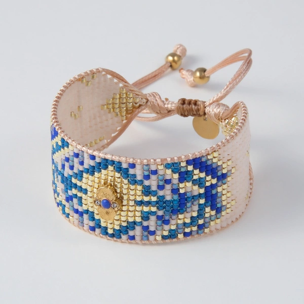 Szeroka bransoletka tkana z paciorków Miyuki z dekorem