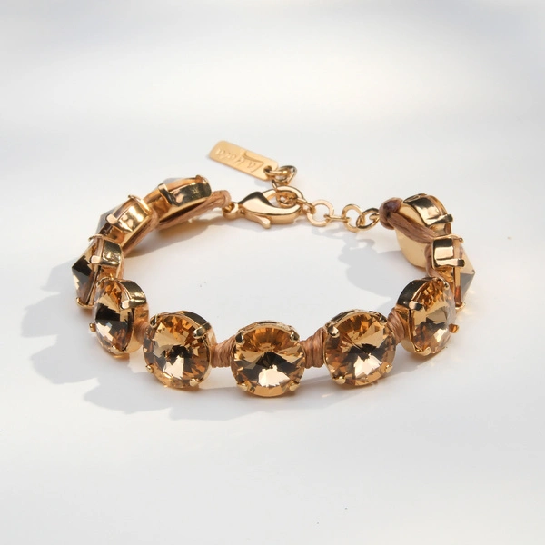 Złocona bransoletka z szarymi jadeitami i kryształkami
