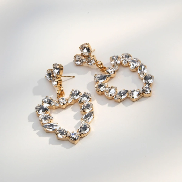 Krótki złocony naszyjnik z pełnym sercem w kryształkach