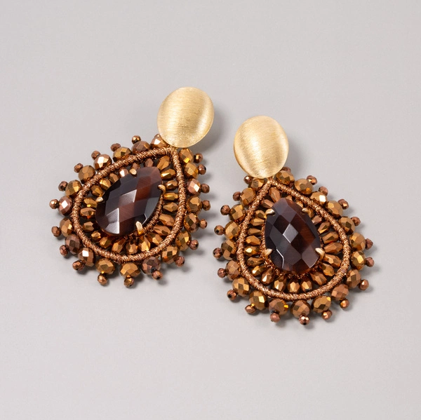 Kolczyki z brązowym kwarcem i zawieszką w kształcie kropli