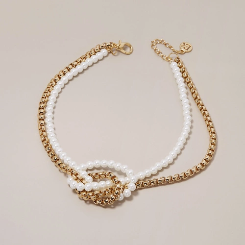 Naszyjnik z pozłacanego łańcucha i pereł z zawieszkami