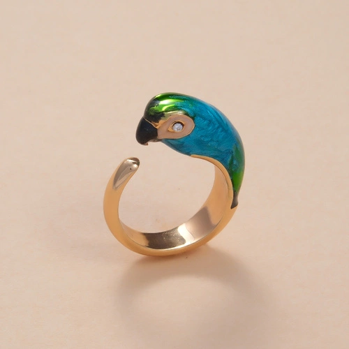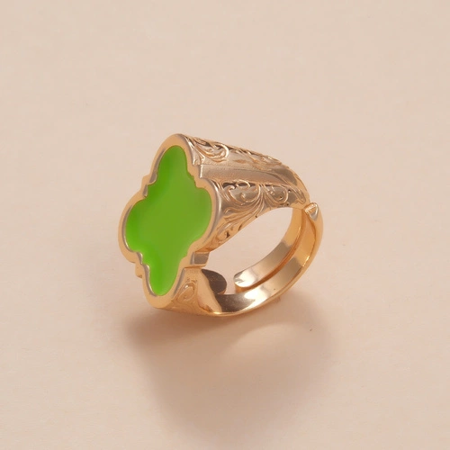 Pozłacany pierścień z ziełonym motywem romańskim z emalii